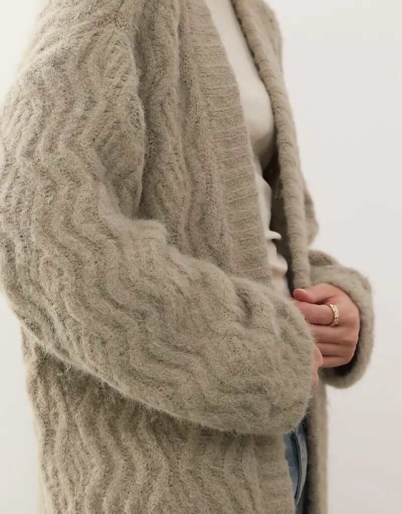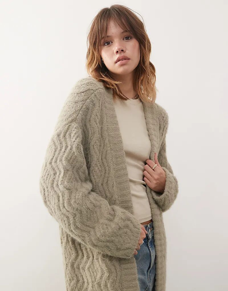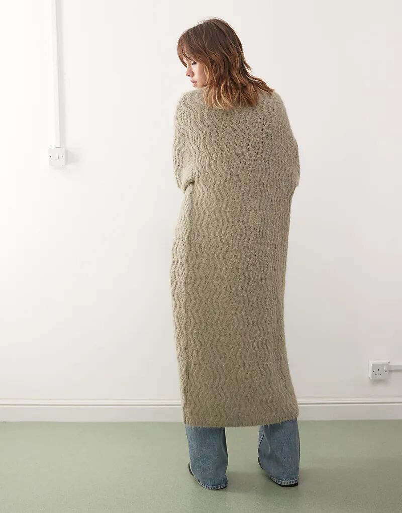 Длинный вязаный кардиган Monki цвета хаки 6 384₽