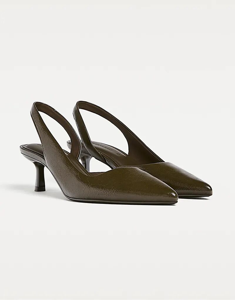 Черные босоножки на каблуке Stradivarius цвета хаки