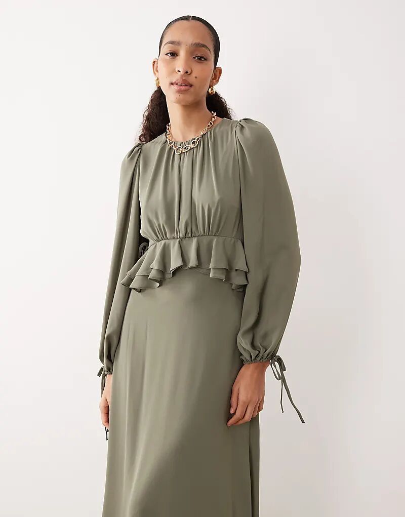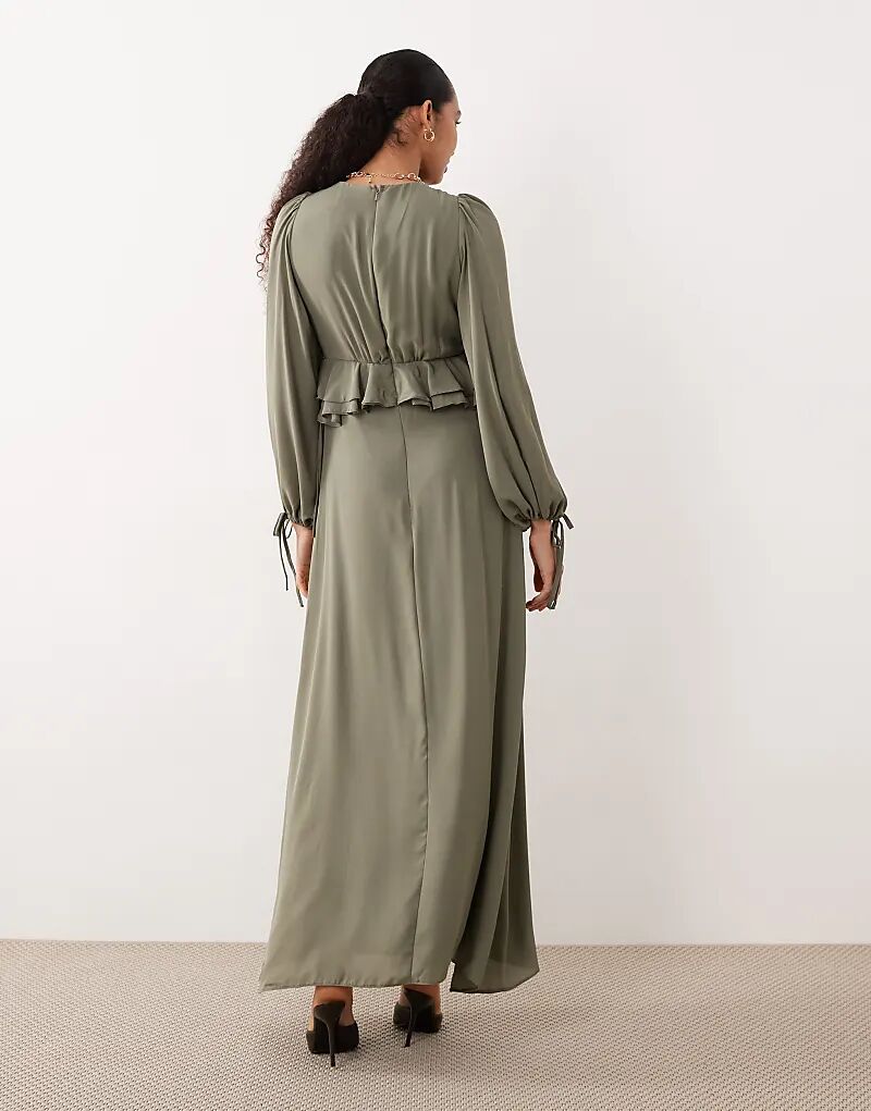 Платье макси с оборками на талии ASOS DESIGN цвета хаки