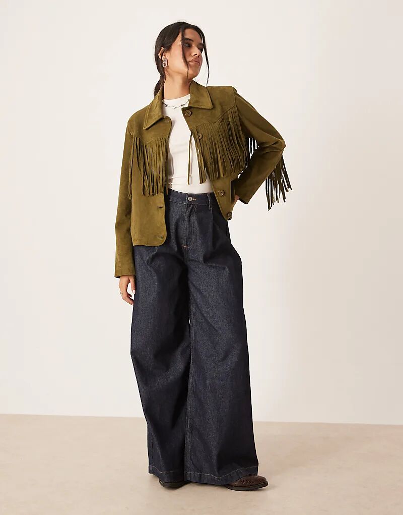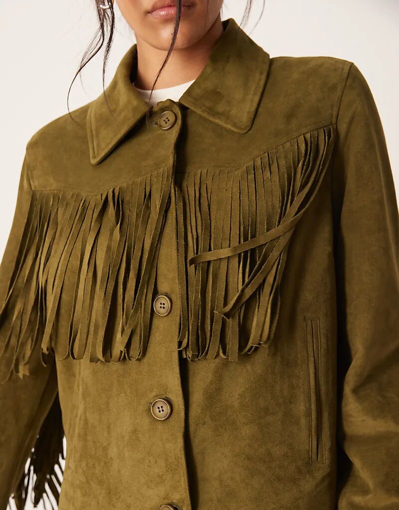 Куртка Urbancode из искусственной замши с бахромой цвета хаки