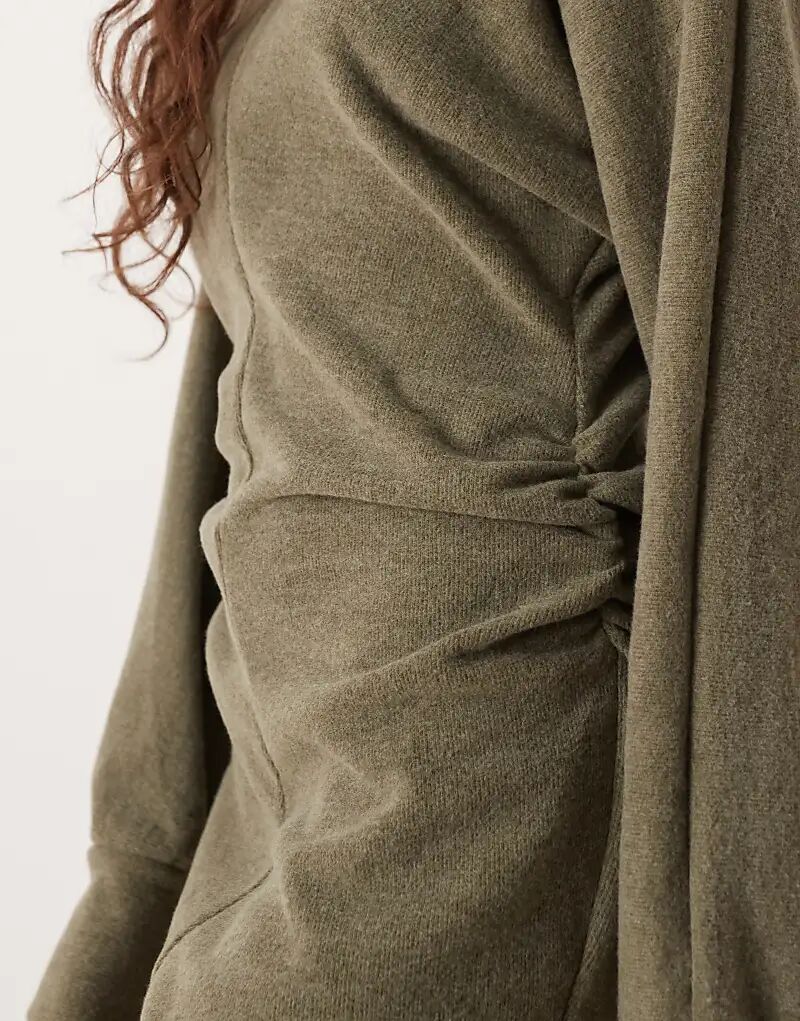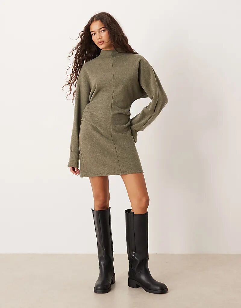 Супермягкое мини-платье с вырезом «летучая мышь» ASOS DESIGN цвета хаки