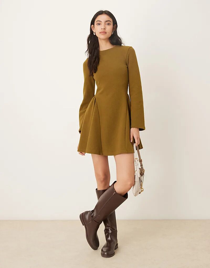 Супермягкое мини-платье годе с длинными рукавами цвета хаки от ASOS DESIGN