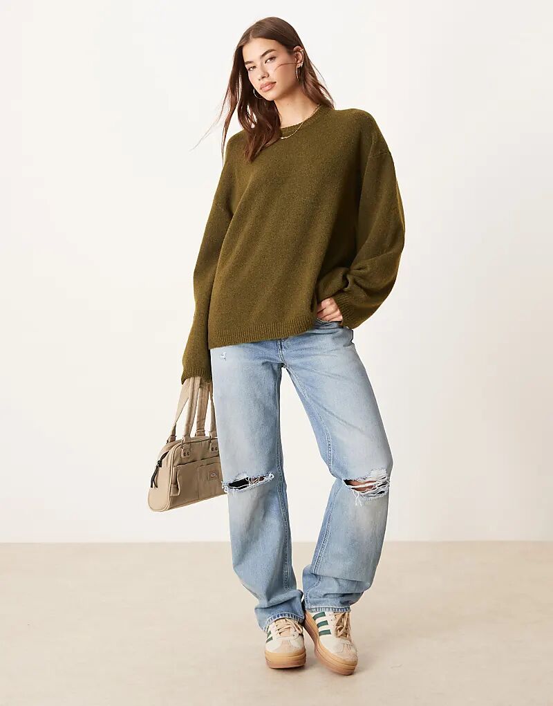Glamorous джемпер с гофрированными рукавами цвета хаки