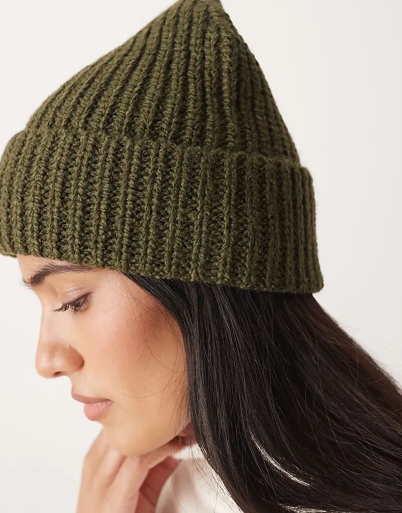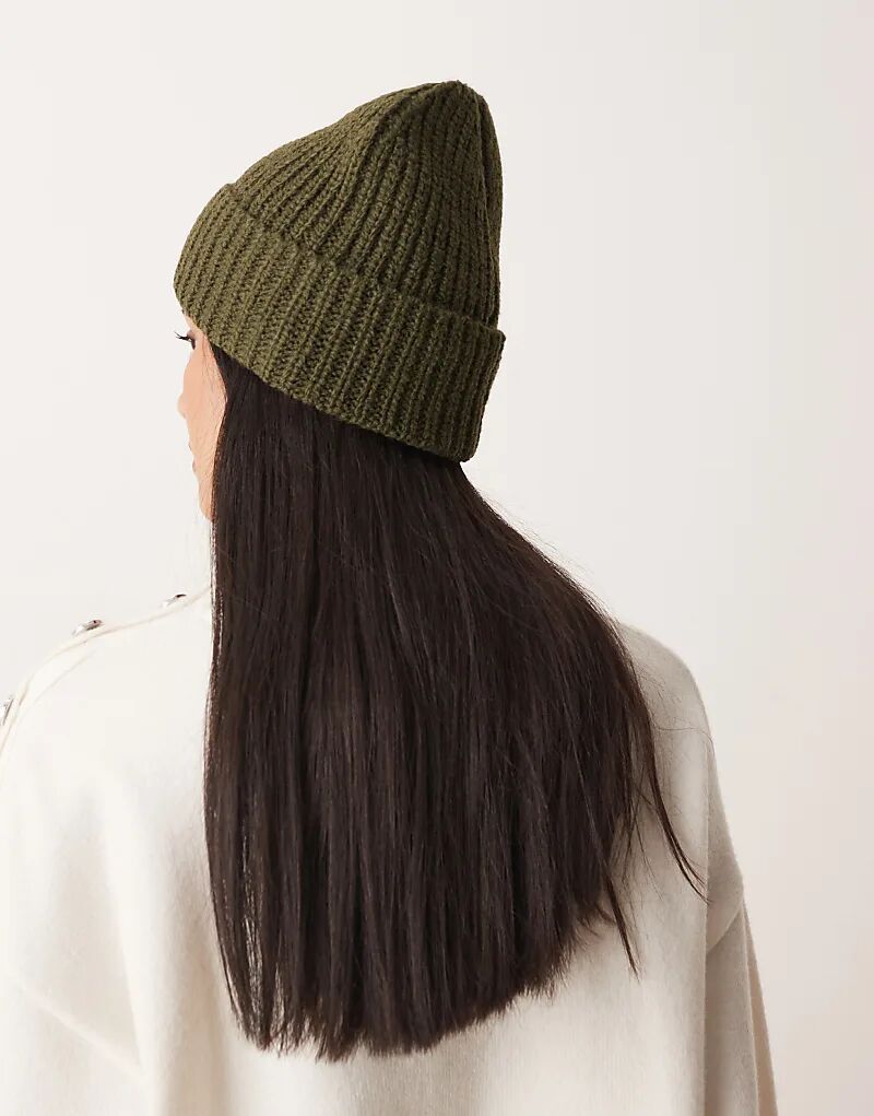 Шапка-бини крупной вязки цвета хаки от ASOS DESIGN
