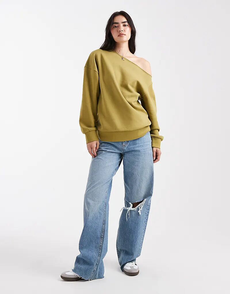 Зеленый свитшот с открытыми плечами ASOS DESIGN