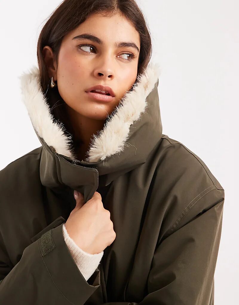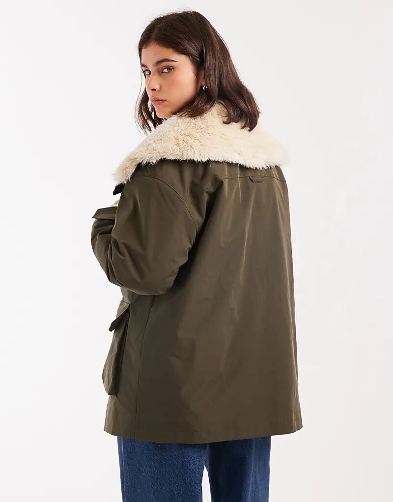 Парка средней длины с воротником-боргом ASOS DESIGN цвета хаки