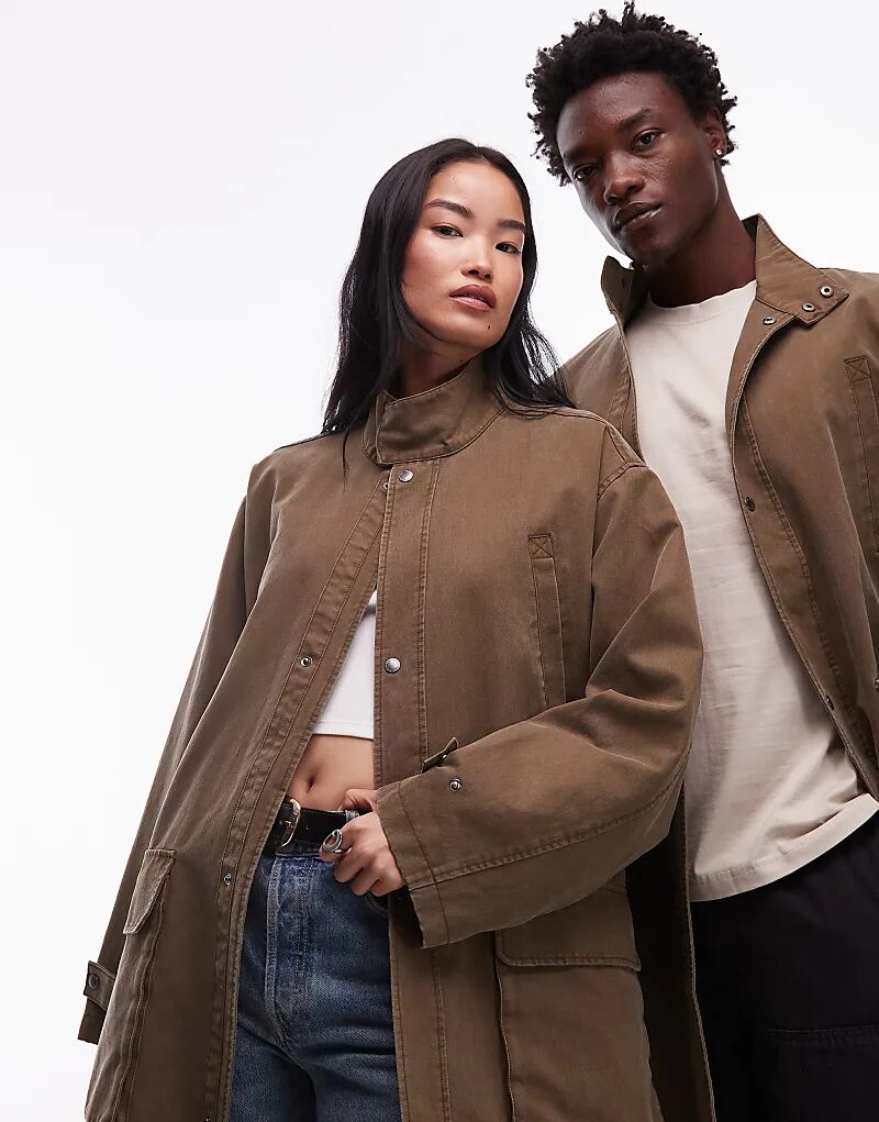 COLLUSION Удлиненная куртка-барн унисекс цвета хаки