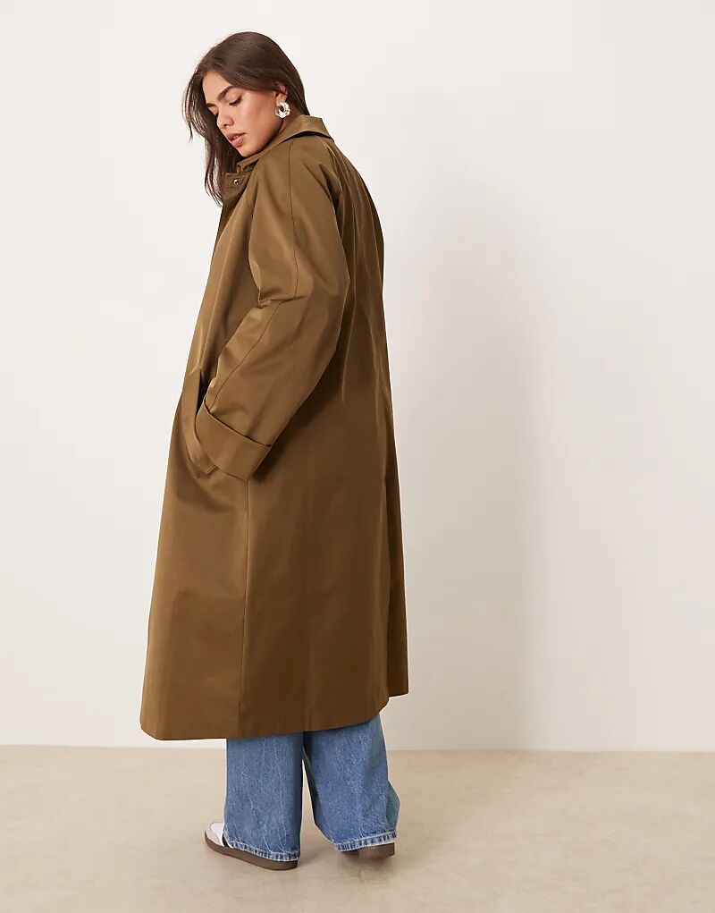 Длинный тренч ASOS DESIGN Curve цвета хаки