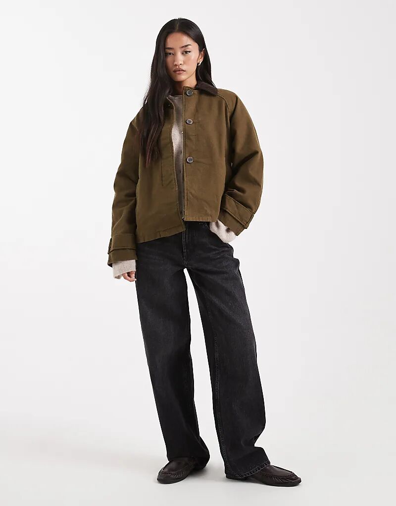 Куртка ASOS DESIGN с контрастным воротником цвета хаки