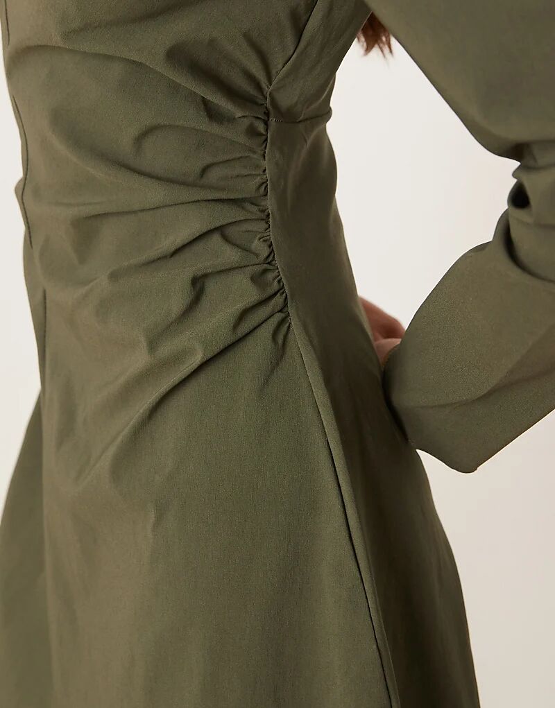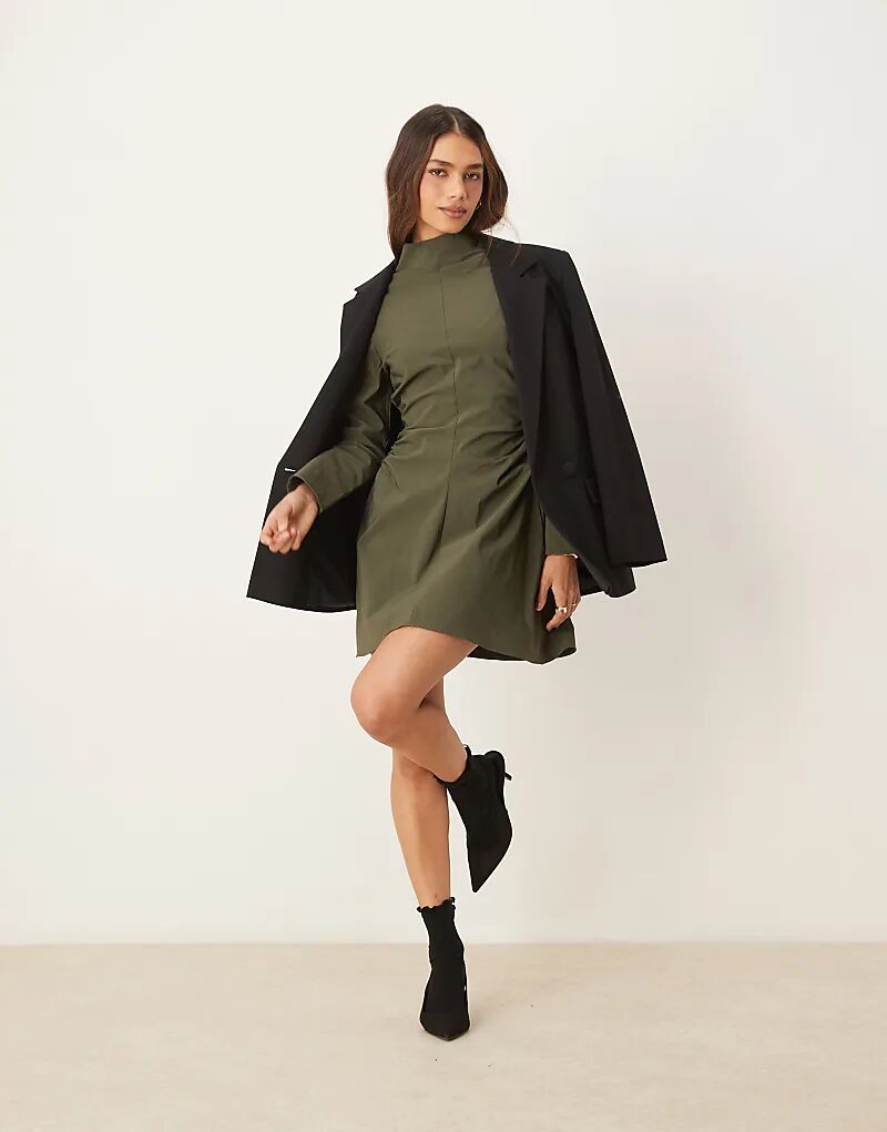 Мини-платье ASOS DESIGN с высоким воротом цвета хаки