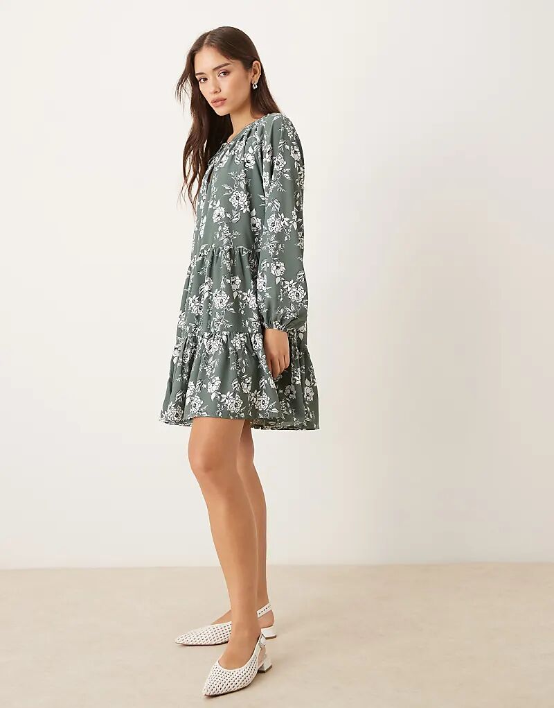 Glamorous мини-платье Swing цвета хаки с белыми цветочными узорами 6 752₽