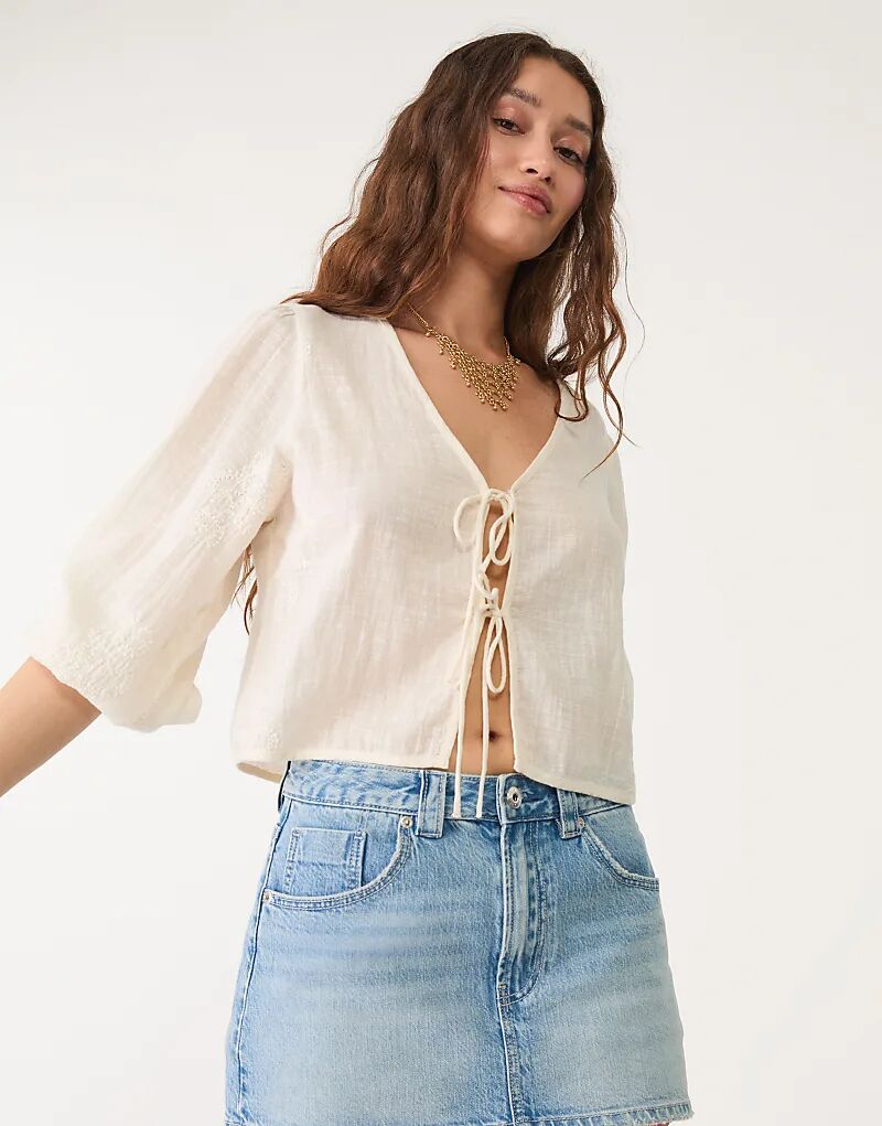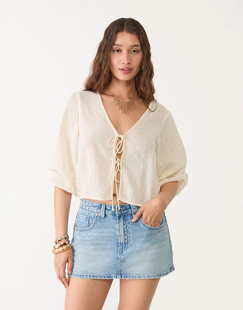 Джинсовая юбка-шорты Stradivarius D62 из синего денима