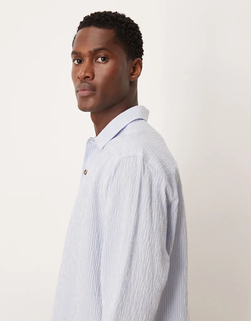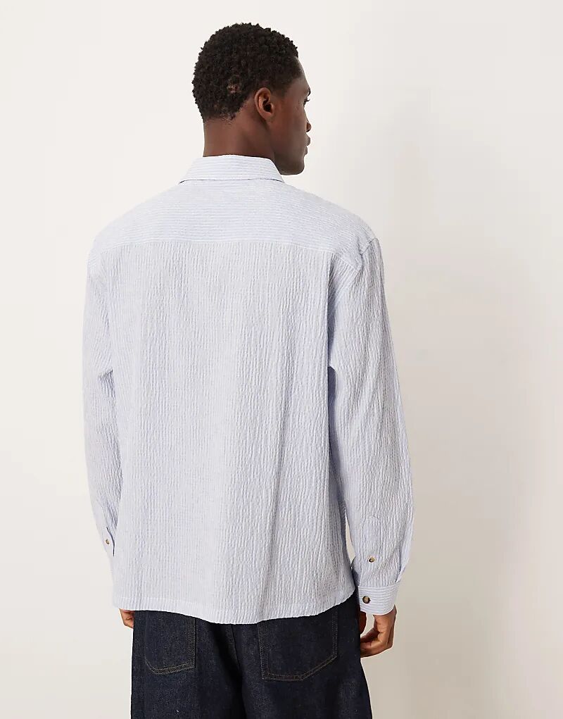 Свободная рубашка из сирсакера ASOS DESIGN в синюю полоску