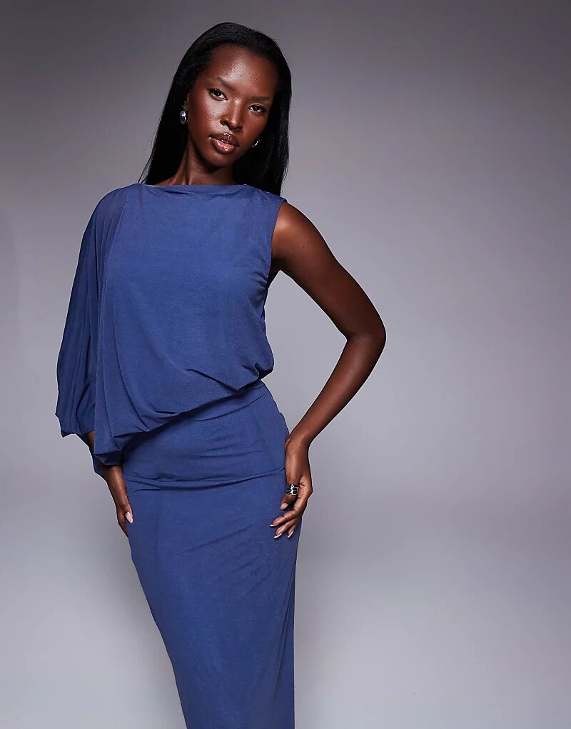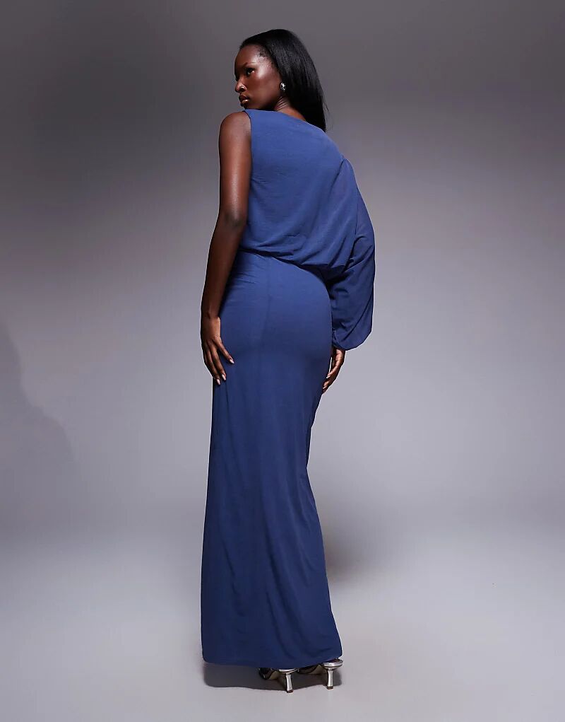Платье макси с драпированным лифом ASOS DESIGN синего цвета