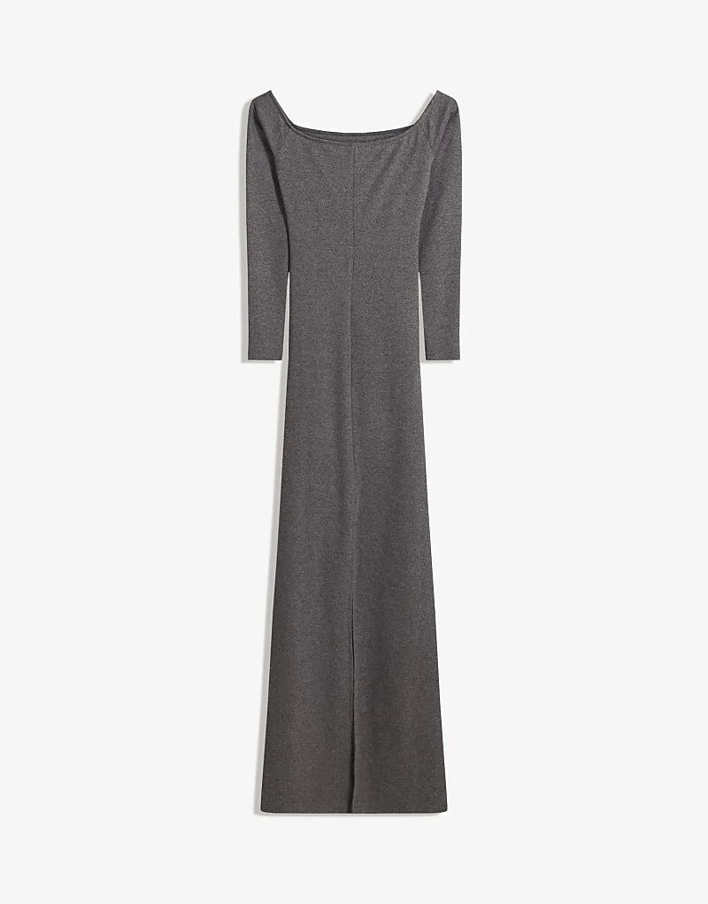 Мягкое длинное платье Bershka Bardot светло-серого цвета