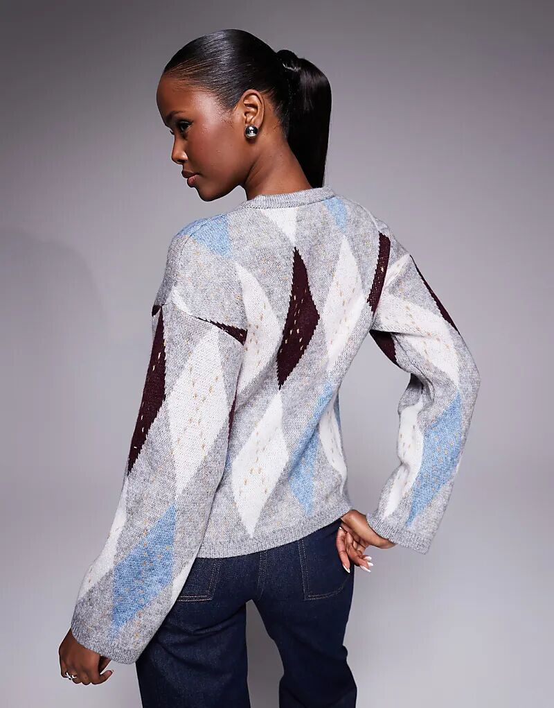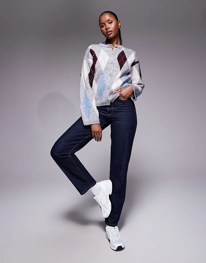 Кардиган River Island с узором ромбами темно-серого цвета