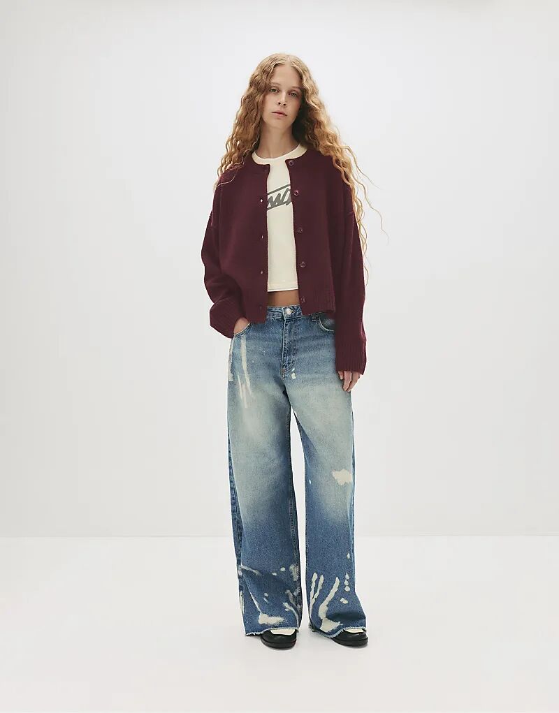 Кардиган Pull&Bear с рукавами реглан и пуговицами бордового цвета 6 030₽