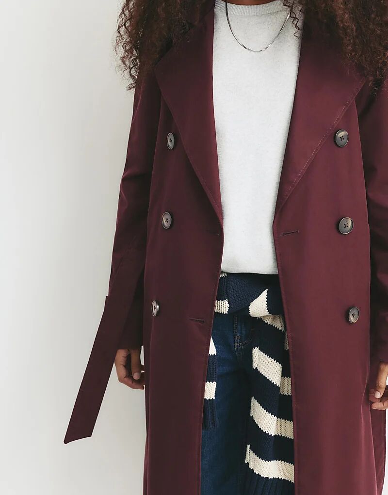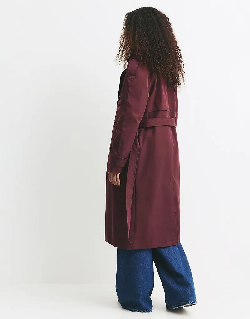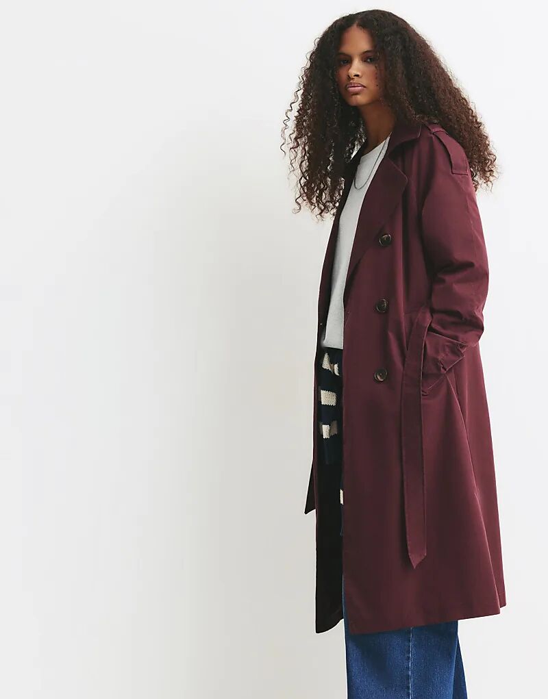 Пальто-тренч с поясом Pull&Bear бордового цвета