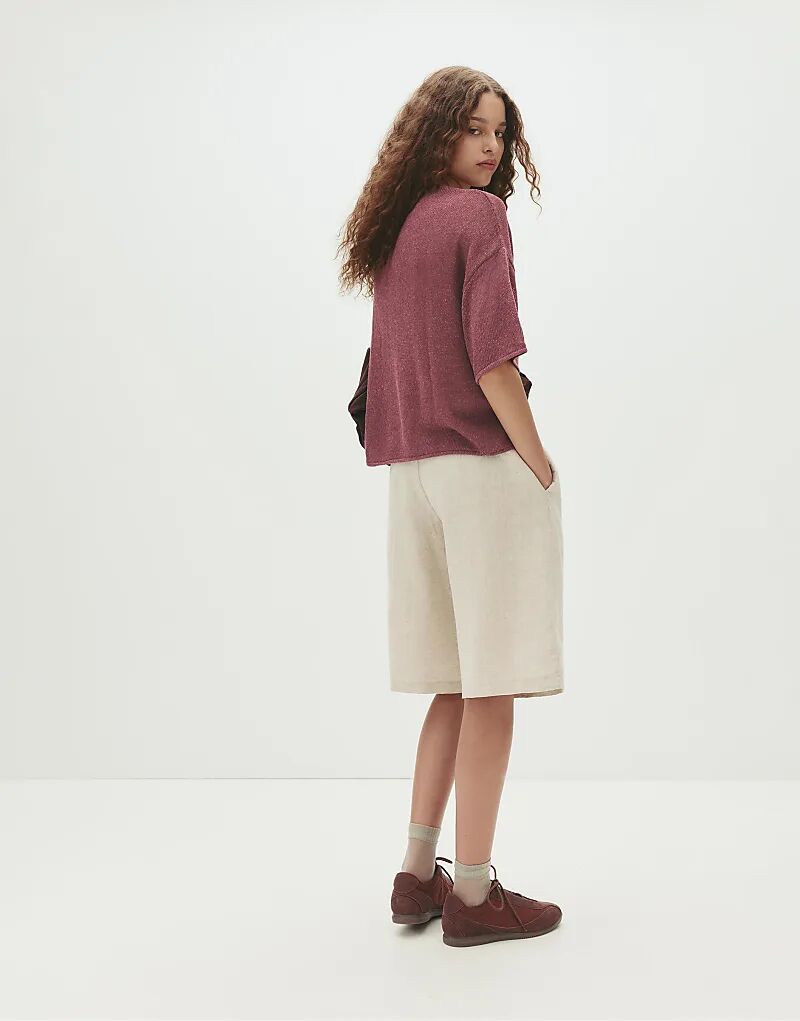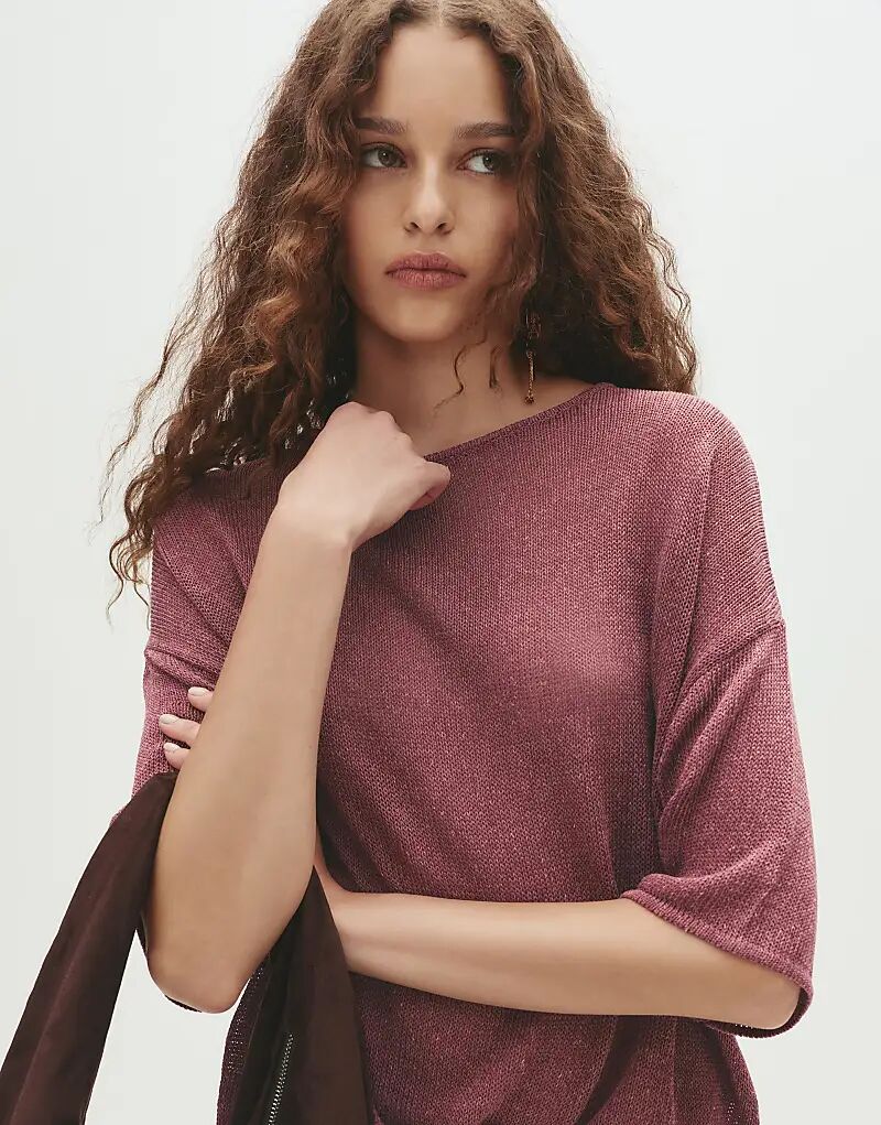 Свитер с короткими рукавами Pull&Bear бордового цвета