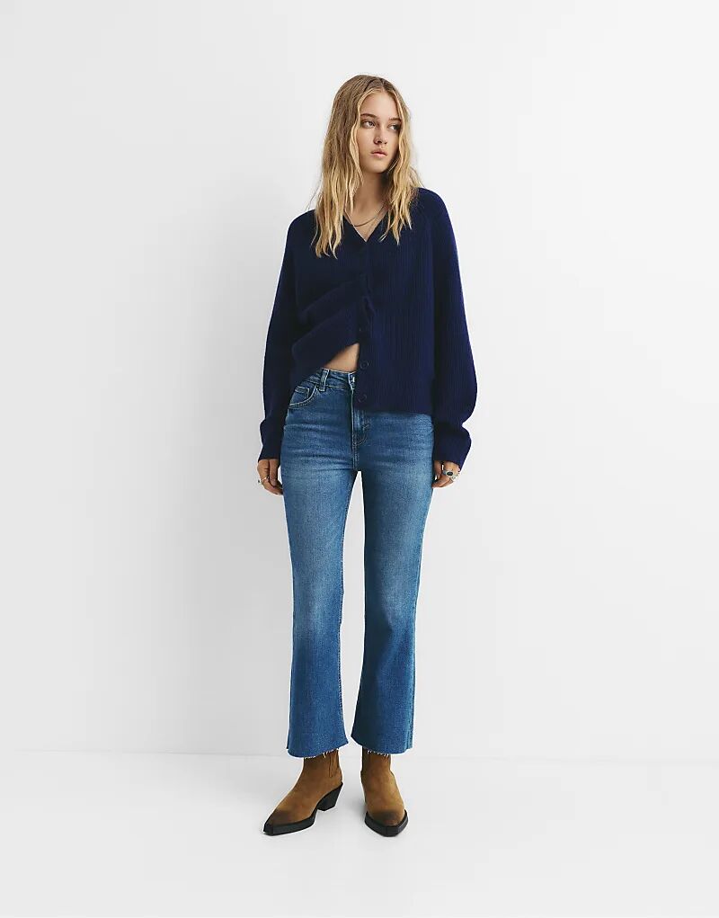 Расклешенные джинсы Pull&Bear Kick средне-синего цвета