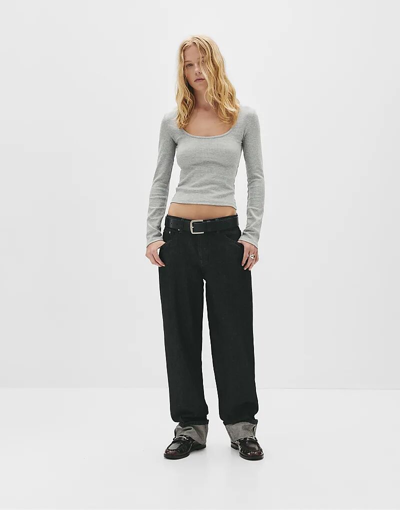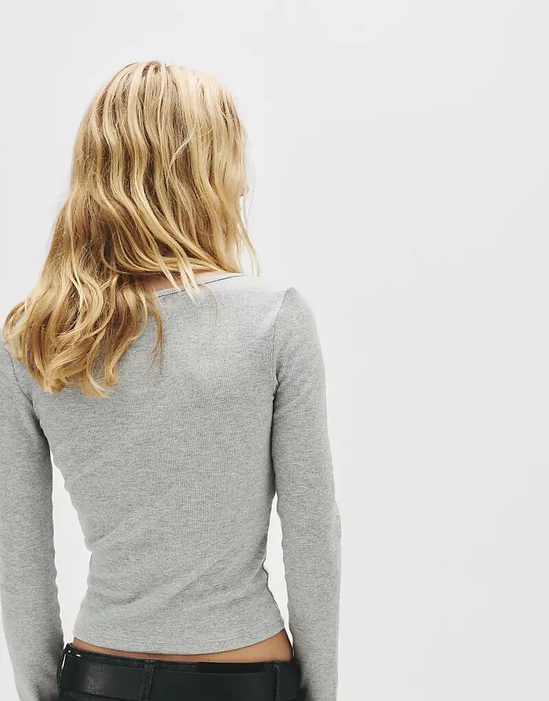 Лонгслив Pull&Bear с длинными рукавами в рубчик, меланжевая, средняя 2 733₽