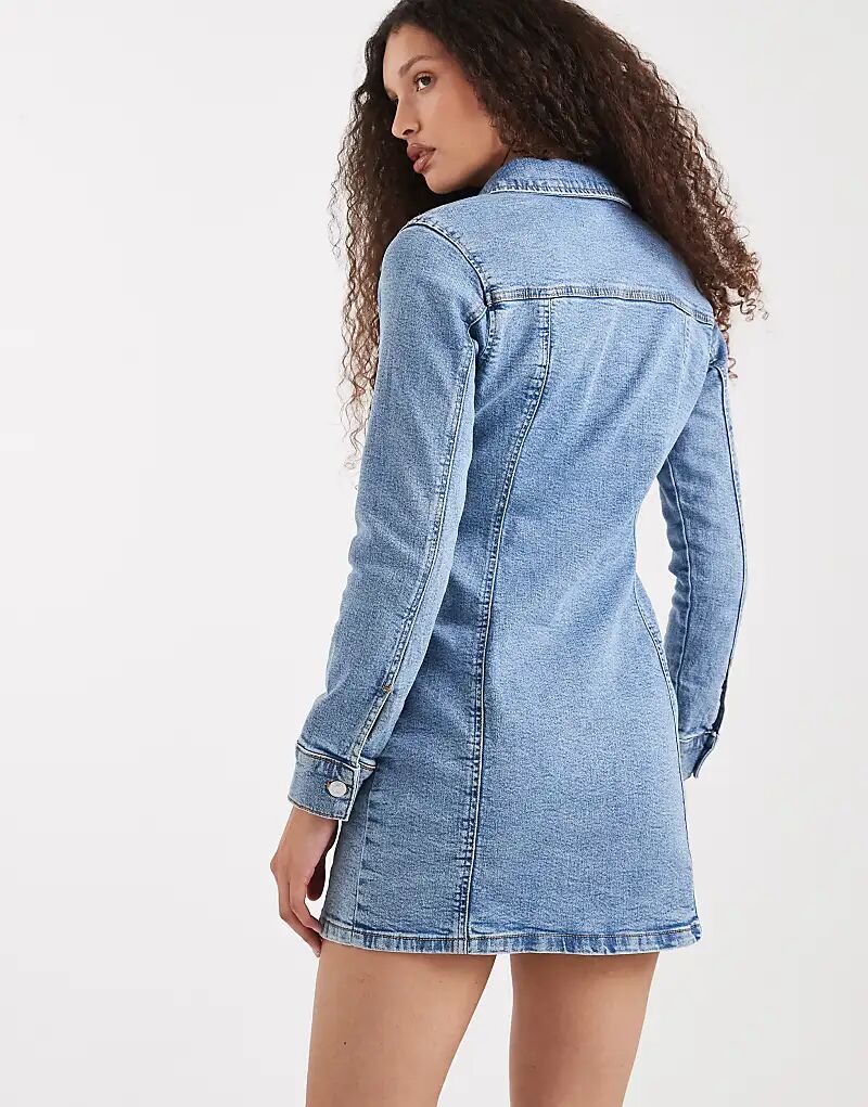 Джинсовое облегающее мини-платье-рубашка с длинными рукавами ASOS DESIGN средне-синего цвета