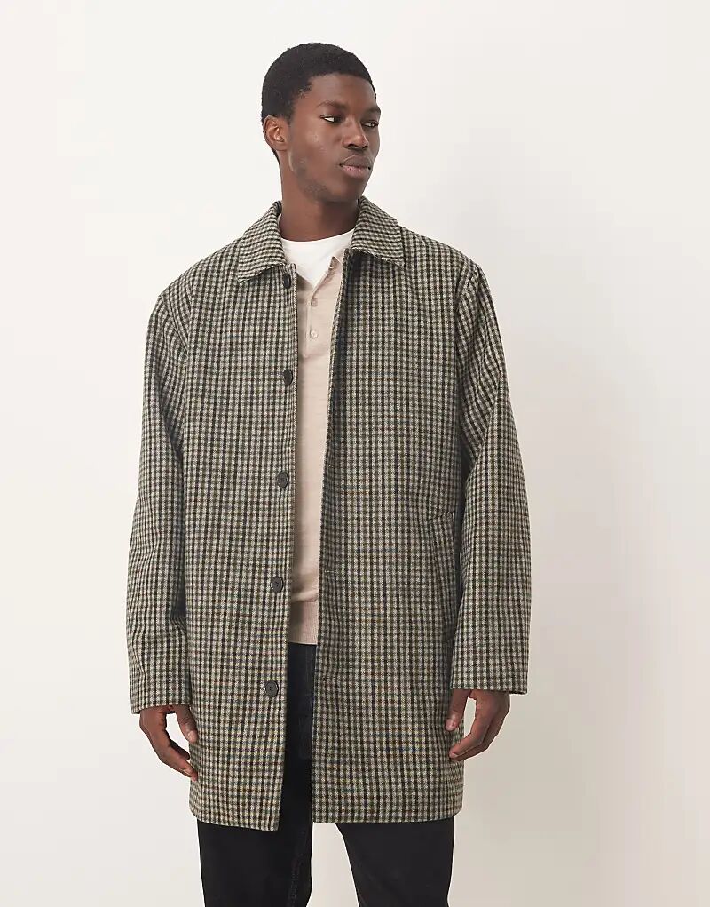 Пальто средней длины ASOS DESIGN в зеленую клетку