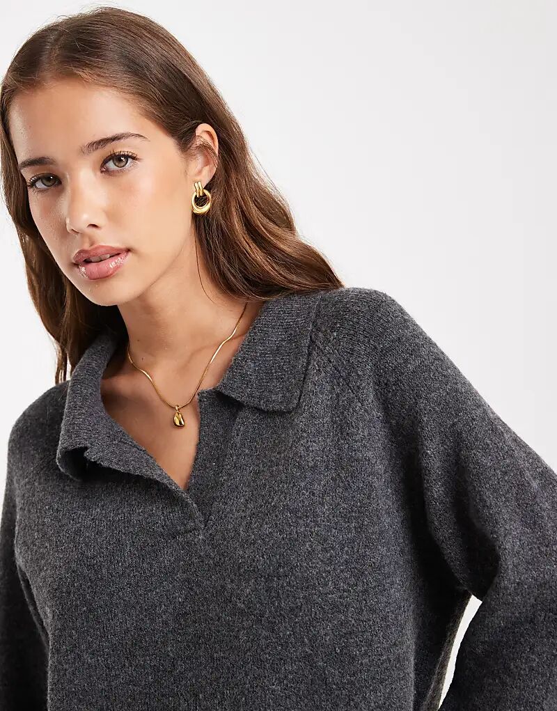 ONLY трикотажное мини-платье поло серого цвета 7 506₽