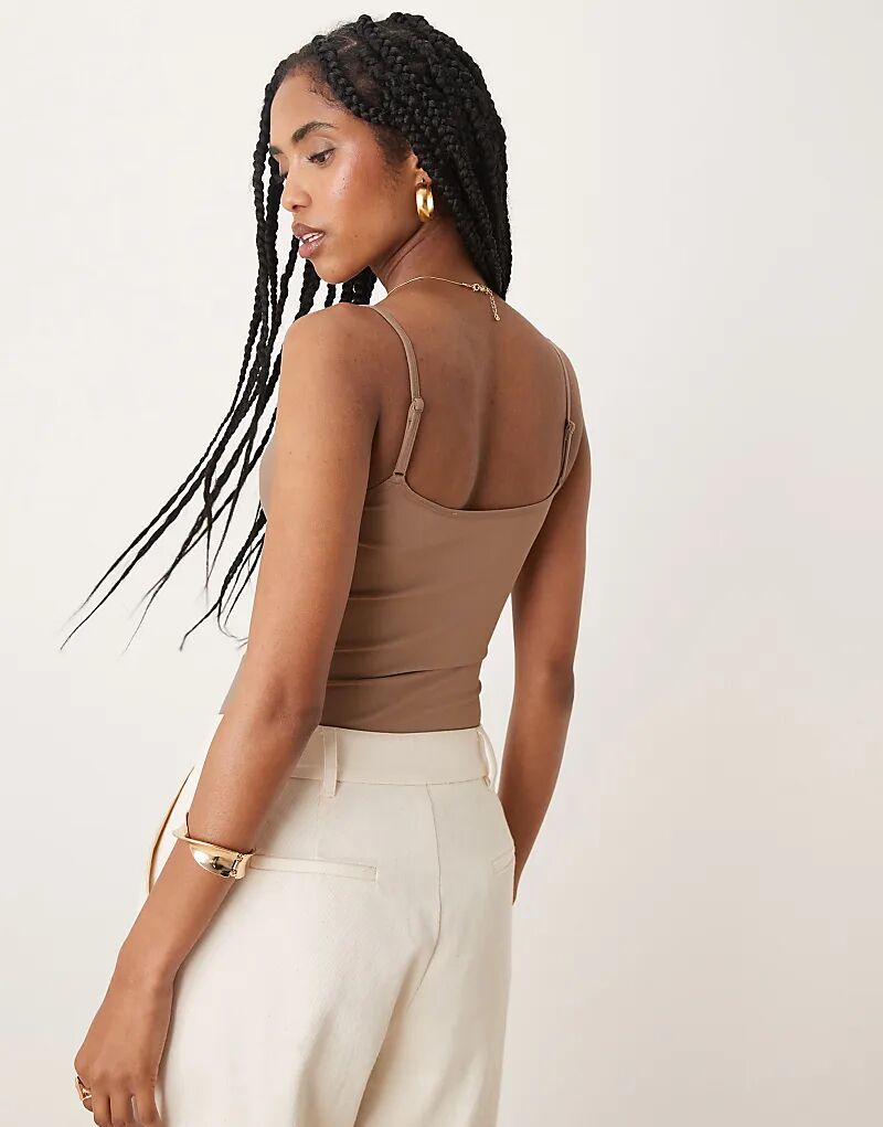 Бесшовный моделирующий боди ASOS DESIGN на бретелях цвета мокко
