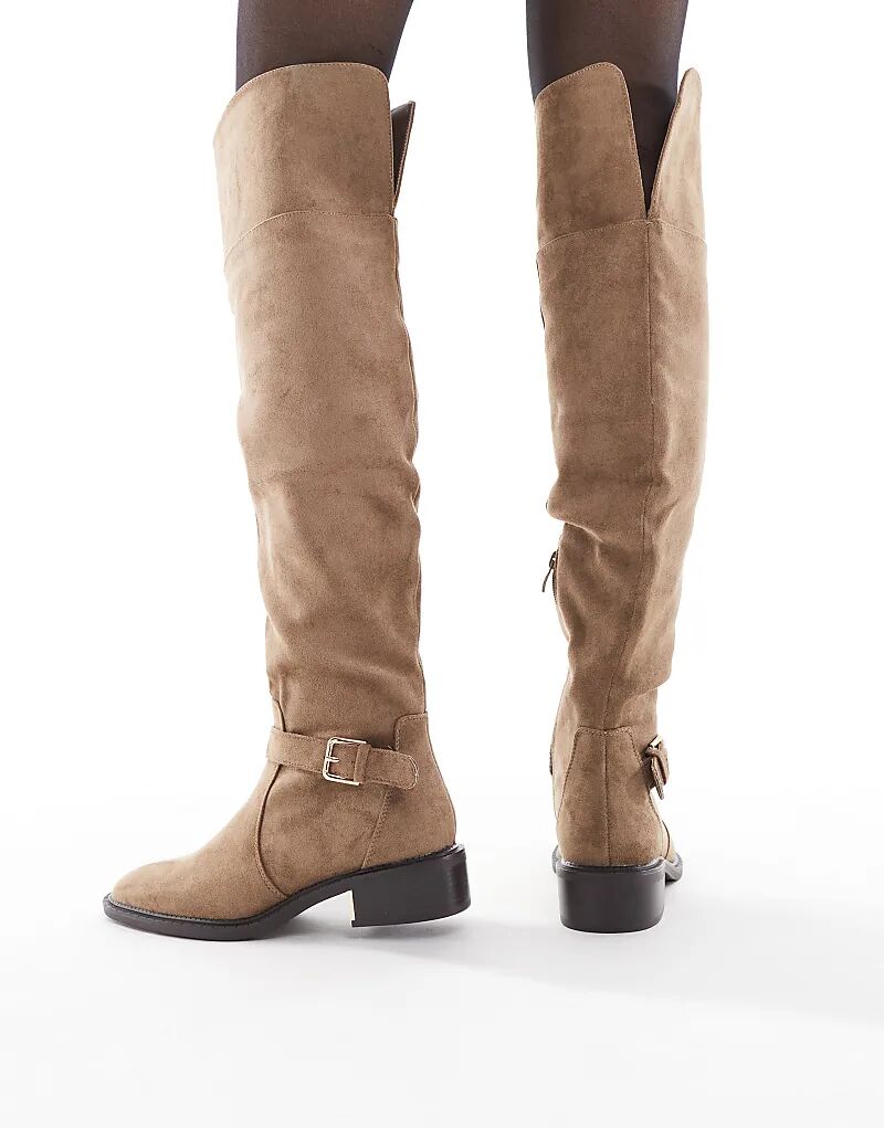 Сапоги выше колена SEQWL Latte с пряжкой цвета мокка