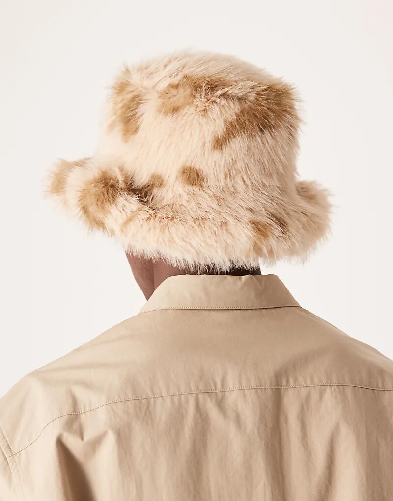 Меховая панама ASOS DESIGN с коровьим принтом