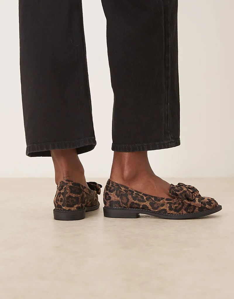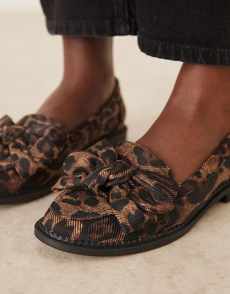 Туфли на плоской подошве с бантом ASOS DESIGN Memphis и леопардовым принтом