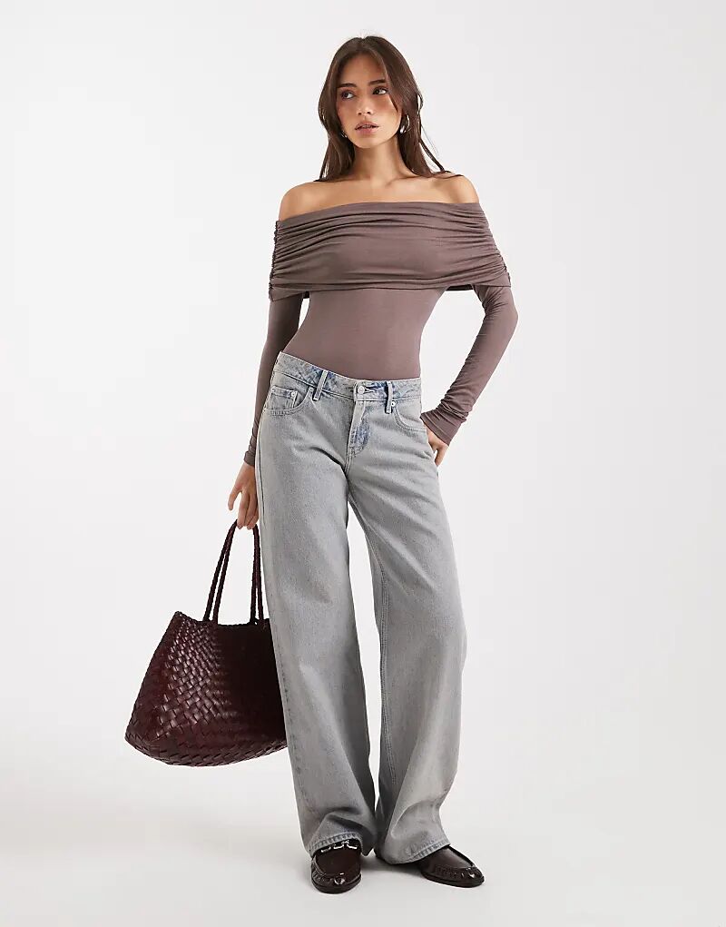 Асимметричное боди Miss Selfridge с вырезом «бардо» в цвете «гриб» 3 147₽