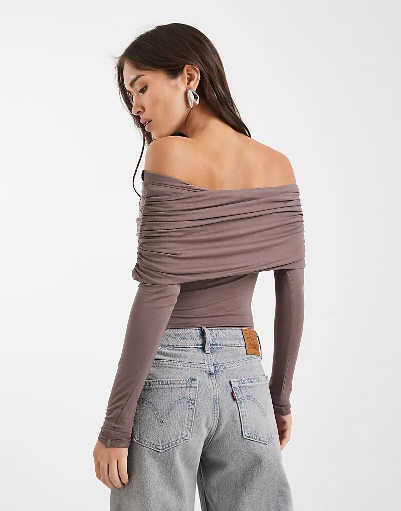 Асимметричное боди Miss Selfridge с вырезом «бардо» в цвете «гриб»