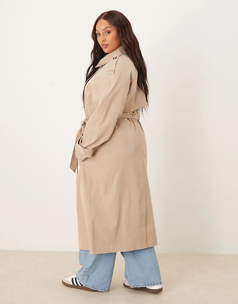 Длинный тренчкот ASOS DESIGN Curve в грибном цвете