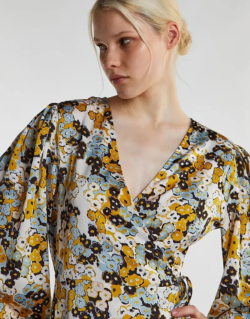 Glamorous мини-платье с запахом спереди в горчичном цветочном стиле