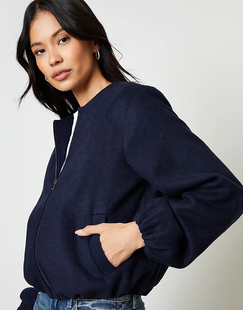 Куртка-бомбер Threadbare Brushed с подолом-пузырьком, темно-синего цвета