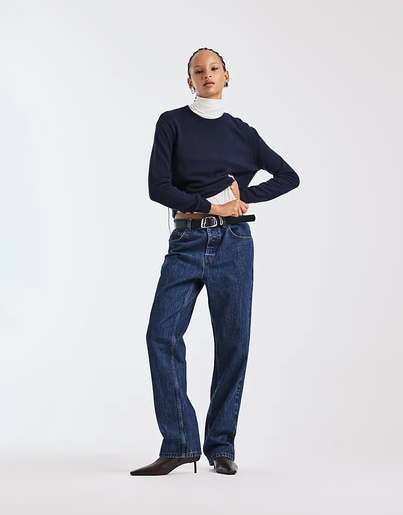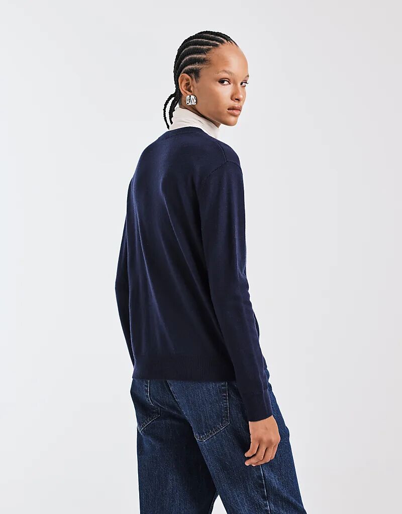 Джемпер Mango Capsule из 100% шерсти с круглым вырезом, темно-синий