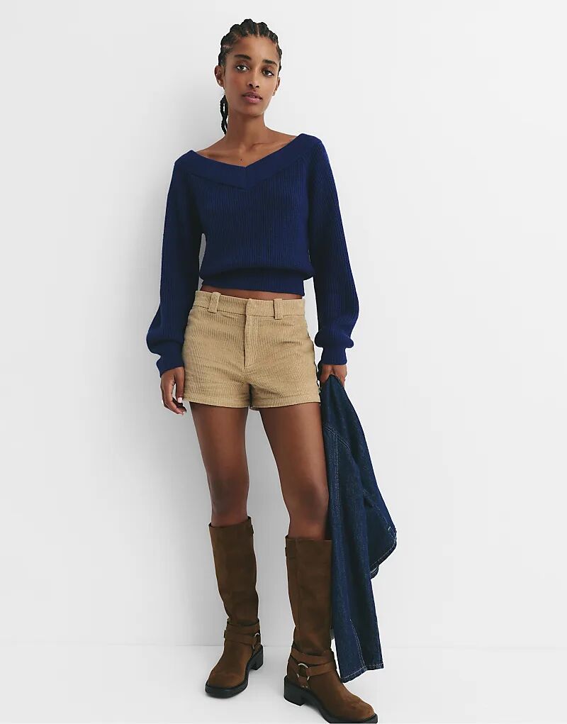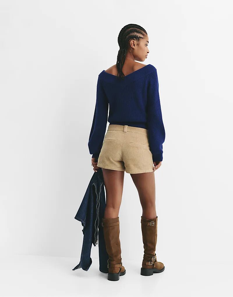 Укороченный свитер изнаночной вязки Pull&Bear темно-синего цвета