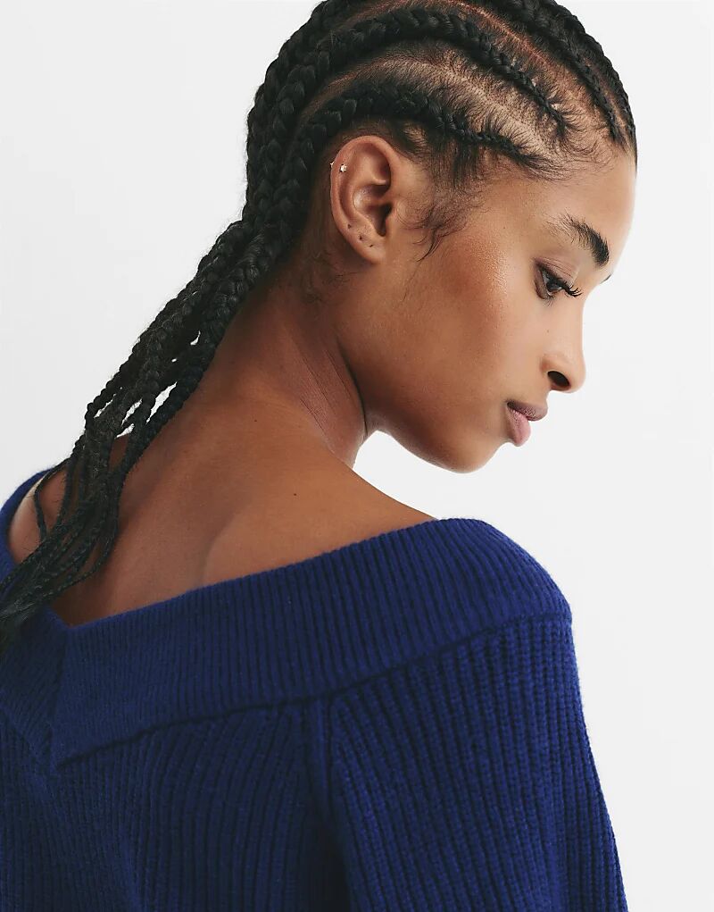 Укороченный свитер изнаночной вязки Pull&Bear темно-синего цвета 2 850₽