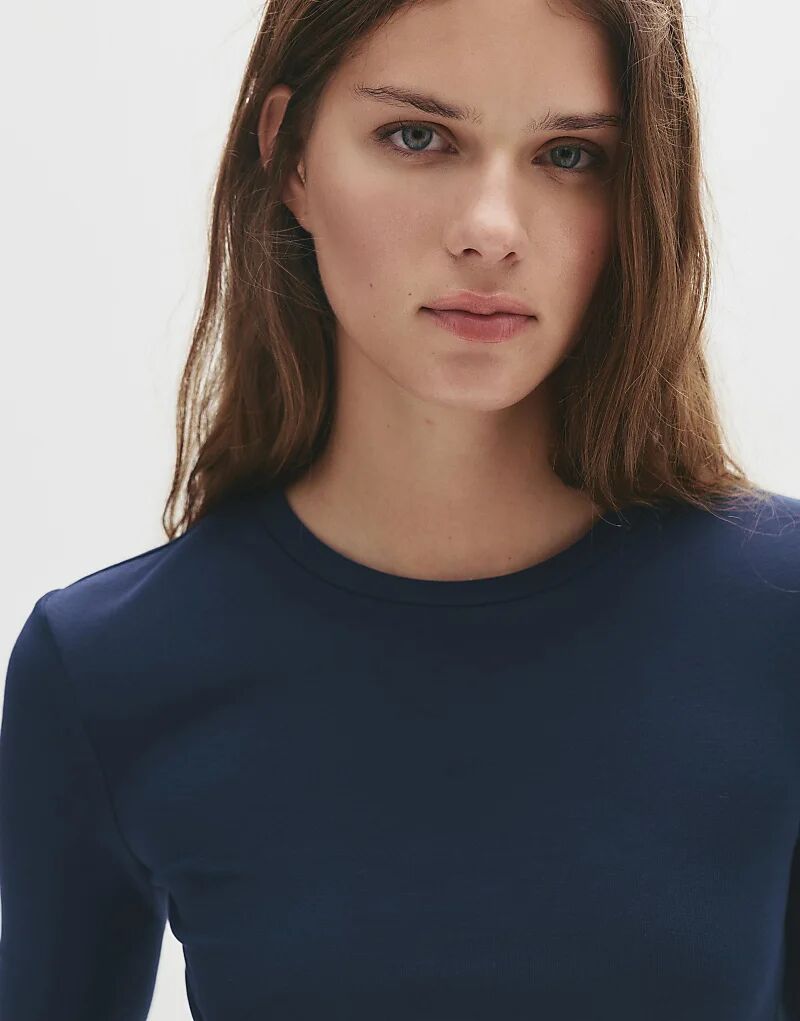 Лонгслив Pull&Bear Fitted с длинными рукавами темно-синего цвета