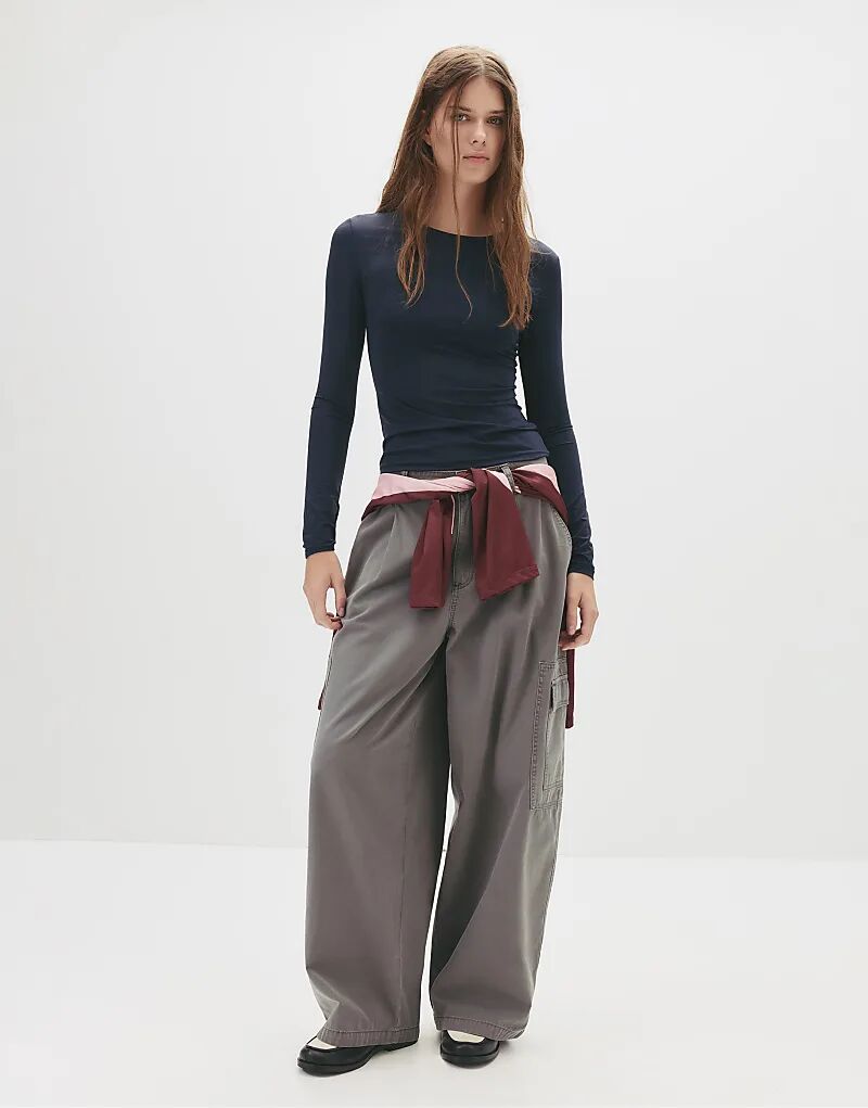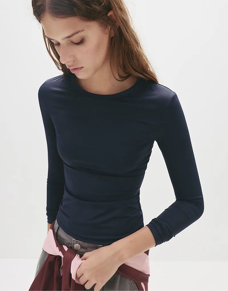 Длинный топ из полиамида Pull&Bear темно-синего цвета 2 817₽