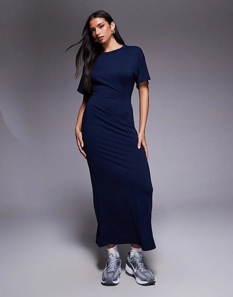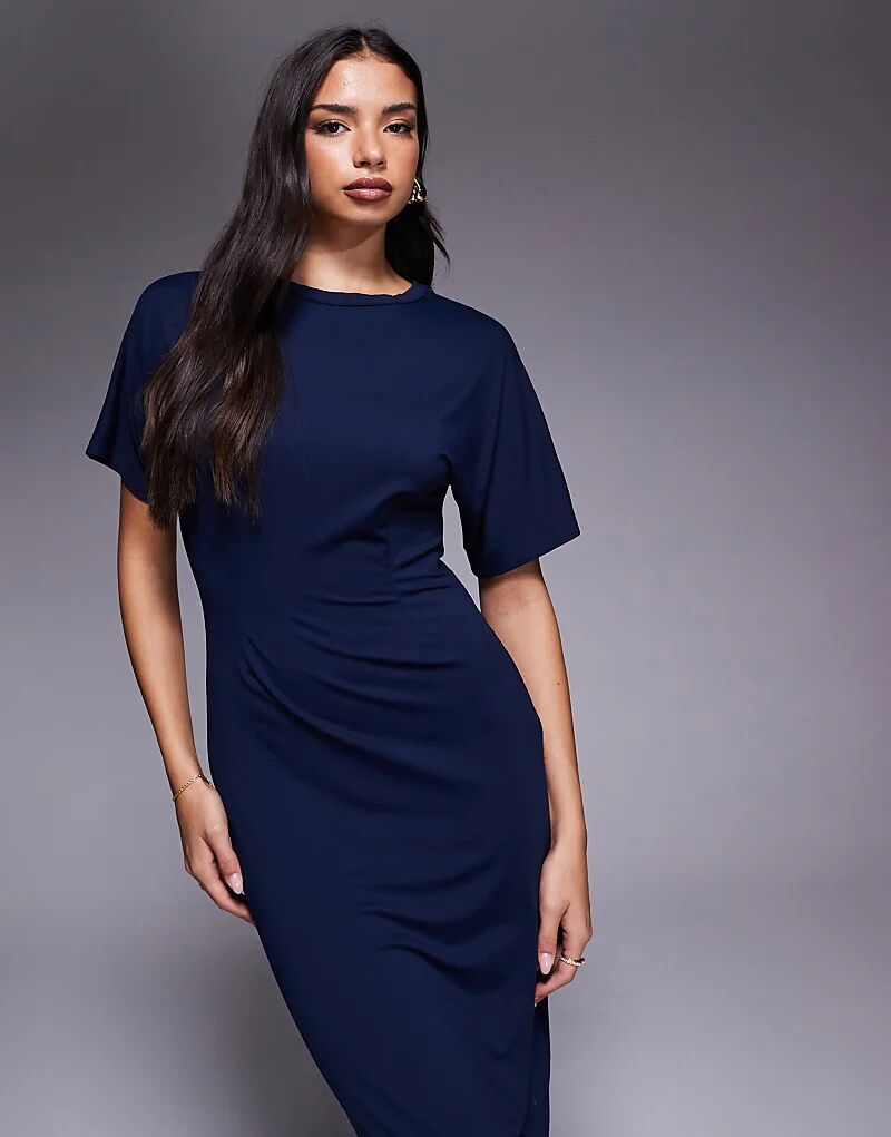 Платье миди ASOS DESIGN с передним швом, темно-синего цвета
