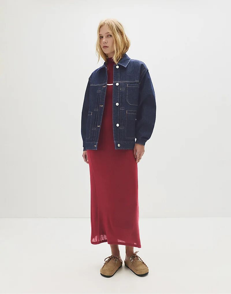 Джинсовая куртка-тракер Pull&Bear темно-синего цвета