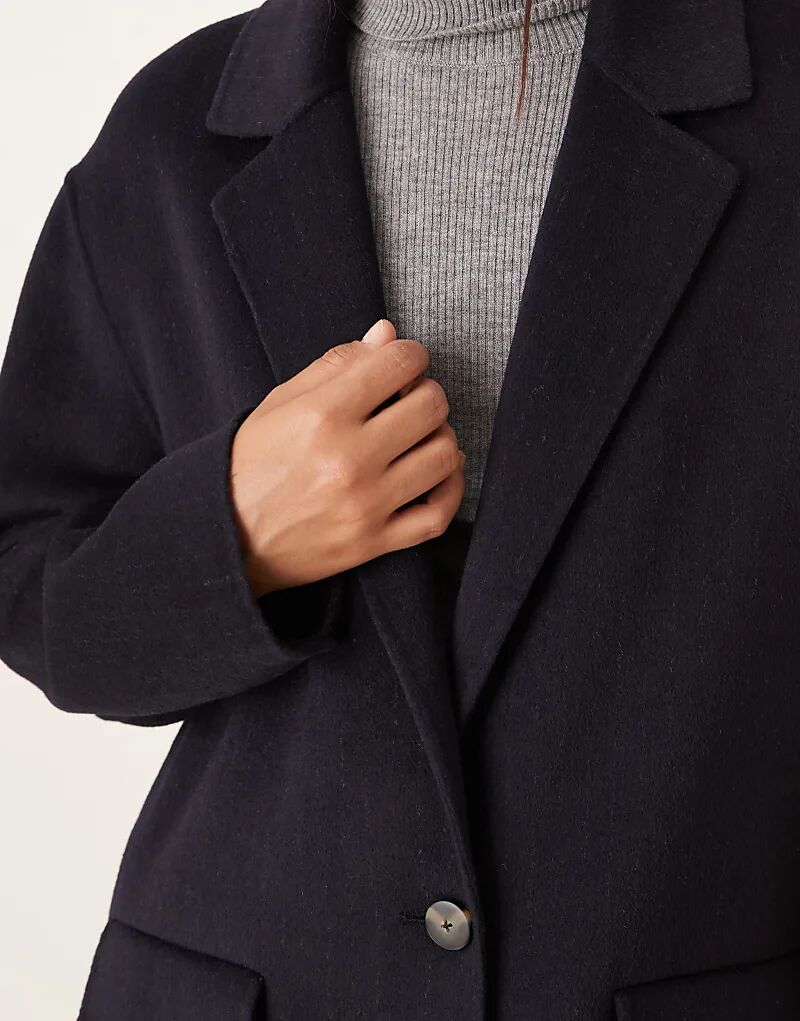 Основная часть: 52% шерсть, 48% полиэстер, подкладка: 55% полиэстер, 45% вискоза.