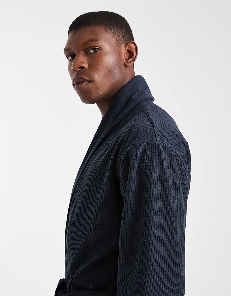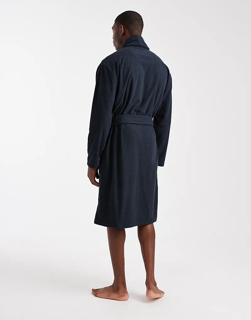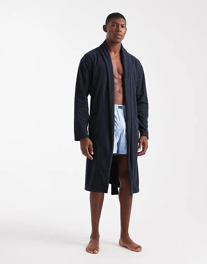 Потертый флисовый халат вафельного цвета, темно-синий