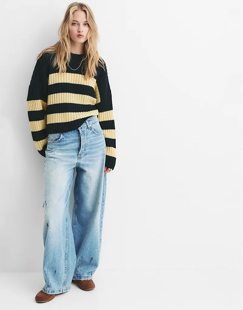 Полосатый свитер Pull&Bear темно-синего цвета 4 480₽