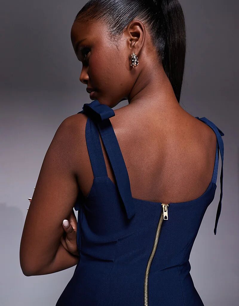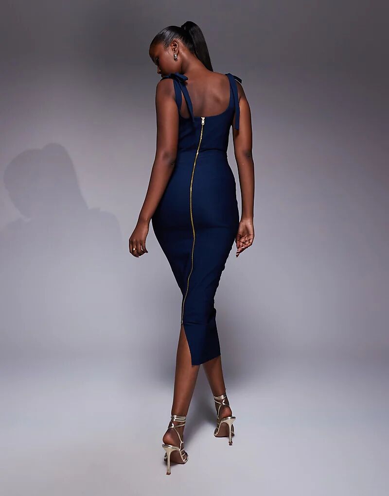 Платье-миди Vesper с рюшами на груди, облегающее, темно-синего цвета
