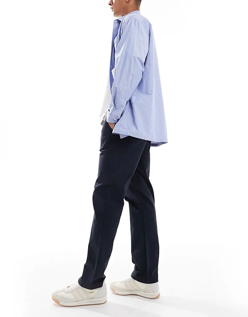 Потертые брюки прямого кроя темно-синего цвета