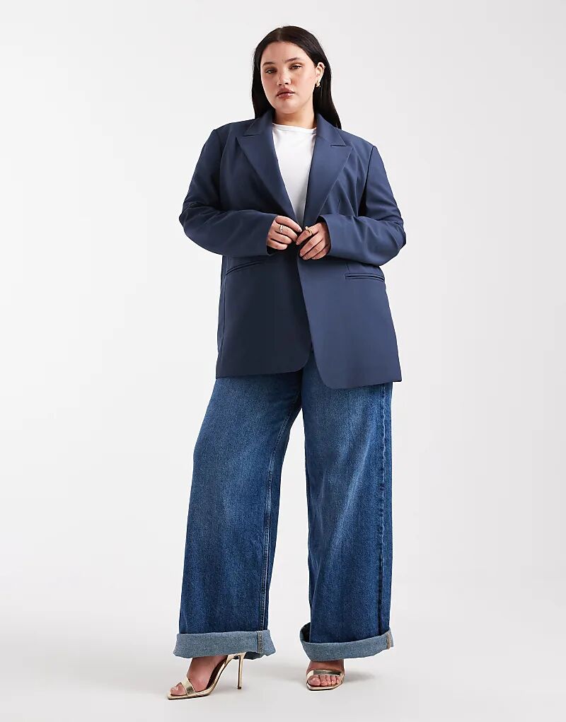 Свободный блейзер ASOS DESIGN Curve темно-синего цвета